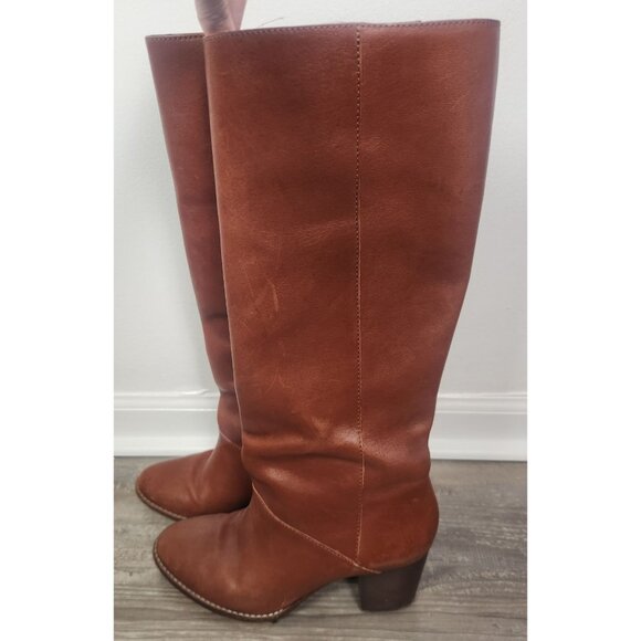 Madewell Women's Sz. 8.5 Knee High Brown Leather Stacked Heel Boots