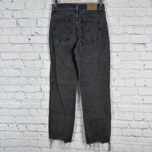 Madewell Women's The Perfect Vintage Straight Distressed Raw Hem Jean, Size 25, Lunar Black/Grey Wash in Color, 99% Cotton/1% Elastane, DM0682