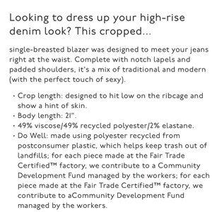 Madewell Women’s The Sutter Crop Blazer Whitfield Micro Check Jacket Size XXS