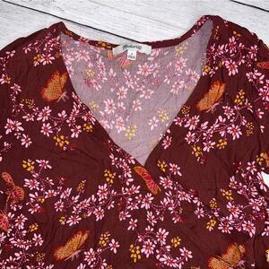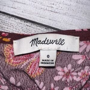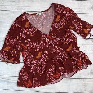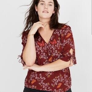 Madewell Women's Tie-Sleeve Wrap Top Burgundy Butterfly Print Size 0