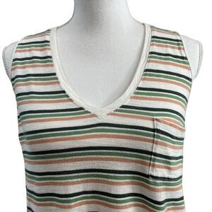 Madewell Women's Whisper Cotton V-Neck Tank Top Size S Roger Stripe J0646
