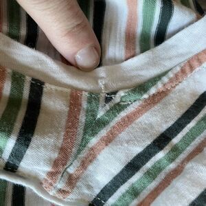 This Madewell v-neck tank top in roger stripe features a relaxed fit and is made from light and airy slub cotton. The overall condition is good, but there is a small repair at the top of the neck shoulder seam, which is hardly noticeable. From a smoke-free environment.