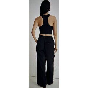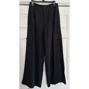 Madewell Womens Wide Leg Linen Blend Cargo Pants in True Black Size 6