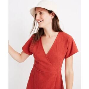 Stay cool and stylish in this Madewell textured wrap dress in a flattering burnt orange shade. Designed with a soft cotton blend and a touch of stretch, this mini dress features a flattering V-neckline, short kimono sleeves, and an easy pullover fit. Perfect for warm-weather outings or casual brunch dates.