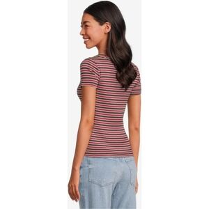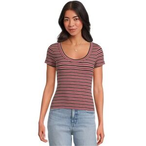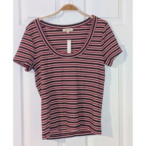 Keywords: Madewell, striped t-shirt, scoop neck, short sleeve, casual top, womens t-shirt, XL, extra large, red and black, fitted tee, new with tags, NWT, classic stripe, fashion top, trendy tee