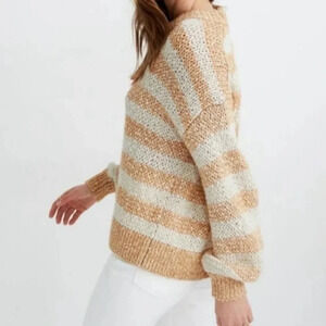 Madewell Wool & Alpaca Blend Baez Pullover Sweater in Creamsicle Stripe Size XXS