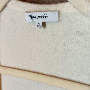 Madewell cardigan in a wool, alpaca, and nylon blend. Excellent condition in a size M. The color is a soft cream. It has front pockets and a flat front. It's a great classic piece.