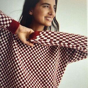Madewell Wool Alpaca Blend Checkerboard Jacquard Pullover Sweater Size Smalll