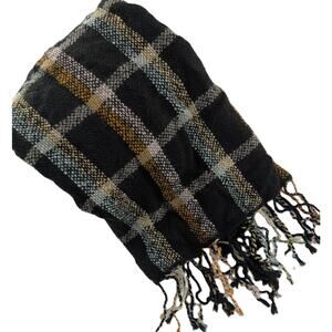 Madewell Wool Blend Black Tartan Plaid Scarf