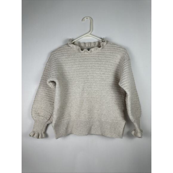 Madewell Wool Blend Chunky Pullover Ruffle Cream Sweater Women's Small