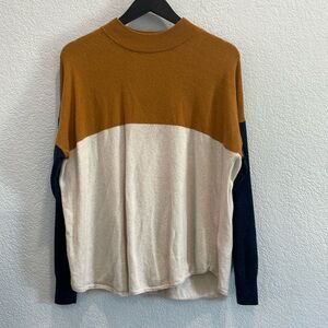 Madewell Wool Blend Colorblock Ashbury Mockneck Sweater in Bronze Size Large