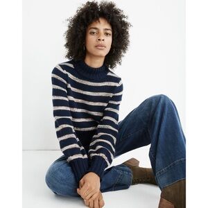 Madewell Wool Blend Striped Metcalf Mockneck Sweater Dark Nightfall