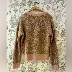 Madewell Wool Shrunken Pullover Sweater in Leopard Print Women’s Size L - Pink