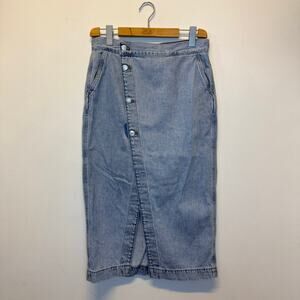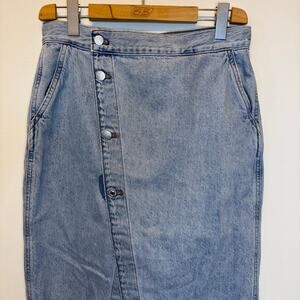 Madewell Wrap Denim Midi Skirt Size 28 Asymmetric Buttons