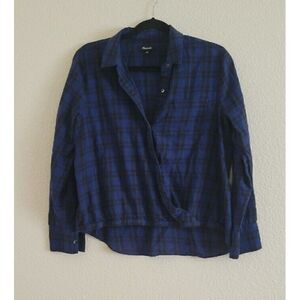 Madewell Wrap Front Plaid Shirt Navy Long Sleeve Size Medium H3254.