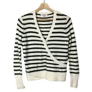 Madewell Wrap Front Sweater in Elthorne Green & White Stripe XXS