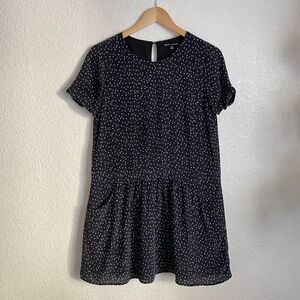 Madewell X Sezane Silk Dot Print Short Sleeve Dress 2 Black