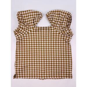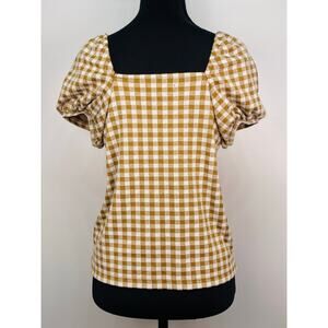 Madewell XS Brown Gingham Puff Sleeve Button Front Blouse