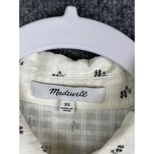 Madewell XS Button-Up Drawstring Shirt in Blooming Ikat white cropped
