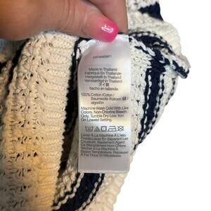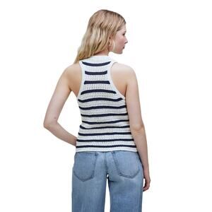 Madewell XS Crochet Knit Tank Top White Navy Stripe Cotton Summer
