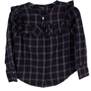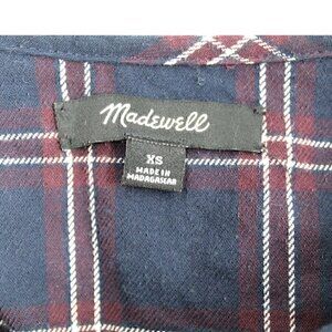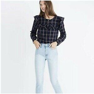 Madewell XS Plaid Ruffle Yoke Top Button Down Blouse Navy Maroon
