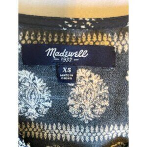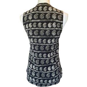Madewell XS Sleeveless Black Ivory Stripe Print Top With Snap Front Blouse Shirt