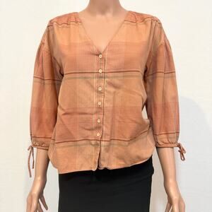 Madewell XXS Morningview tie sleeve button front v neck blouse top TB 2789