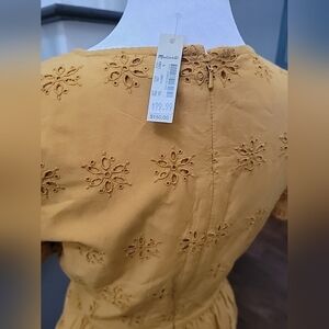 Charming yellow midi dress by Madewell. Features delicate eyelet details. Short sleeves and a flattering fit.