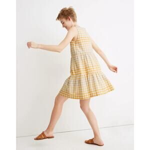 Madewell Yellow Ombre Gingham Tiered Mini Dress Size Medium Spring Preppy Picnic