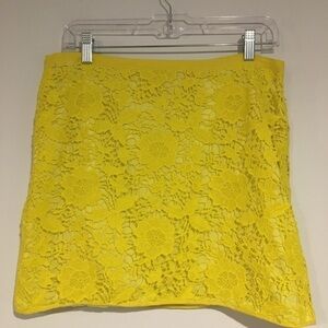 A feminine lace miniskirt, realized in a cheery shade. Grosgrain ribbon trims the waist and hem, and the side closes with a hidden side zip.