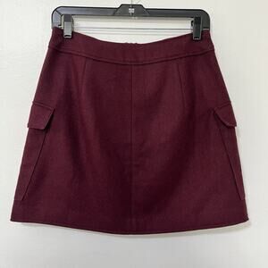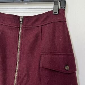 Madewell Zip Front Mini Skirt Size 4 Burgundy Preppy Academia Pockets Womens