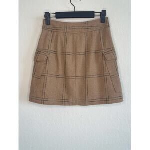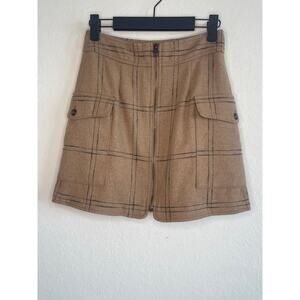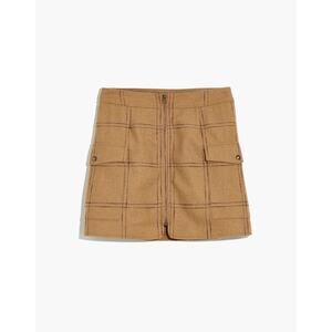Madewell Zip-Front Mini Skirt in Windowpane Camel Wool Blend Women’s - Size 00