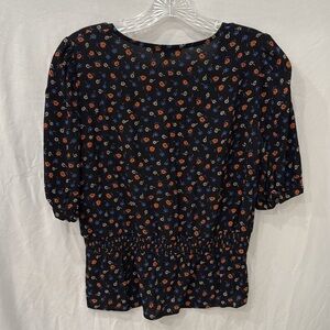 Madewell blouse short sleeve black with flowers sz 0