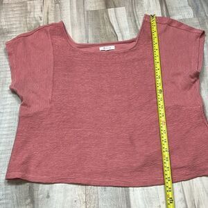 Madewell boxy tee textured fabric size large salmon pink. Beautiful tee. See photos for approximate measurements. Great gently worn condition.