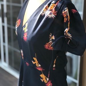 Beautiful dark blue silk dress from Madewell. Size 0. Nipped at waist. Flutter tie sleeves. Slight gathering at shoulders.