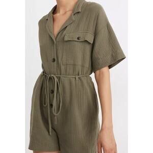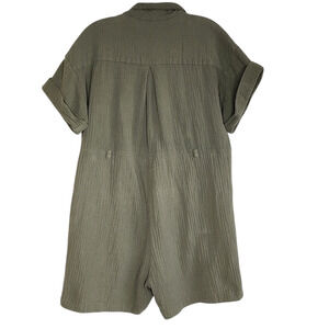 Madewell casual olive-green double gauze button down romper, size small