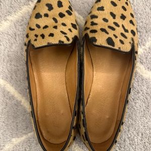 Faux cheetah print slip on flats, leather lined…worn only a few times
