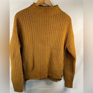 Madewell chunky cotton sweater. A mustardy gold color with cute buttons.