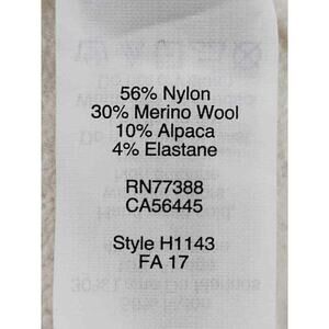It comes in a size M and is perfect for casual occasions. The sweater has no closure and no accents making it a simple yet elegant piece. The fabric type is knit with nylon, elastane, and wool materials, which provide durability and strength. Get ready to add this vintage styled sweater to your collection.It has merino wool and alpaca in the fabric blend and thumb slots in the sleeves. It is in gently used condition and measures 19" from armpit to armpit and 27" from shoulder to hem.
