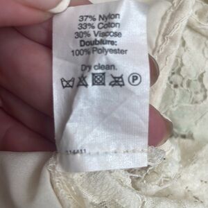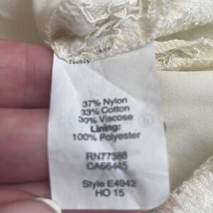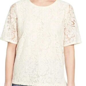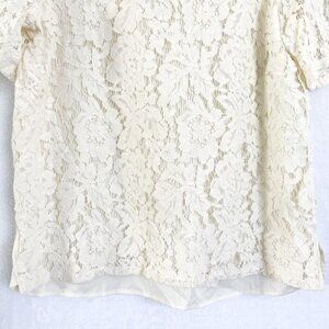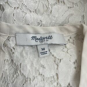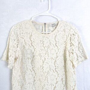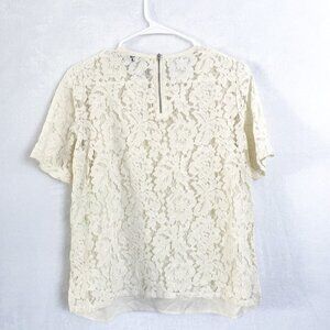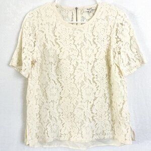 Madewell cream floral lace short sleeve blouse size medium lined front panel, unlined in back and on sleeves zips up in back