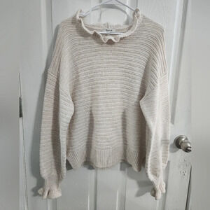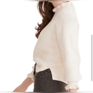Madewell cream ruffle victorian sweater sleeve Marino wool blend stretch large