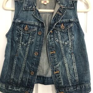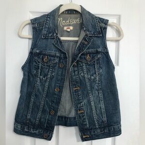 Madewell denim jean vest with rustic buttons womens size XS. Two pockets. This has nwt as seen on tv tag not manufacturer tag. Vest never worn. Great vest for fall spring or winter pair with your favorite long sleeve or shirt sleeve shirt.