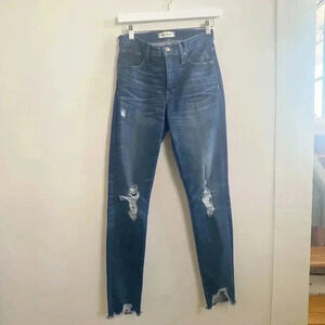Madewell distressed raw hem 9” high rise skinny jeans 26