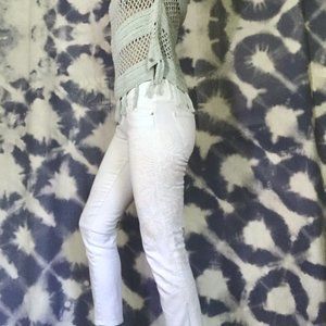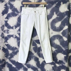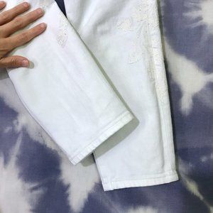 FINAL PRICE DROP :: white/ivory mid-rise skinny jeans by Madewell with floral design embroidered down the side of each leg.