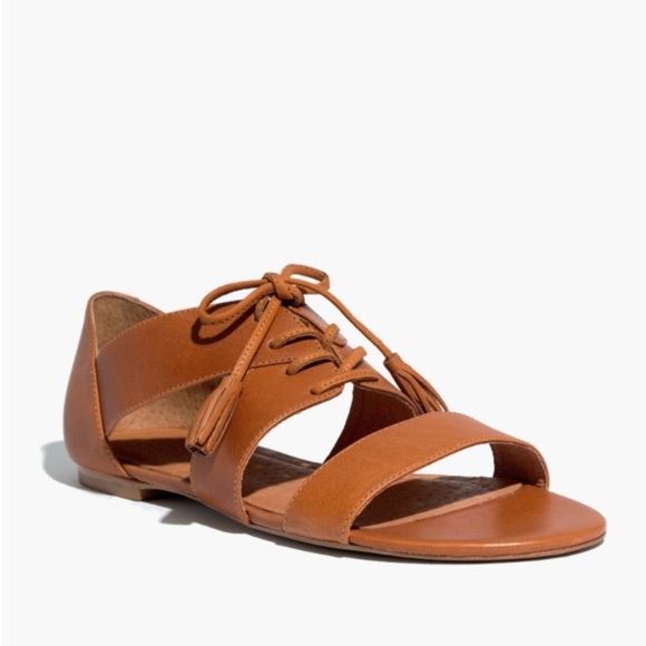 Madewell et x sazane Women's Tan Leather lace up Strappy flat Sandals Brazil