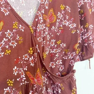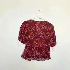 Madewell size 00 wrap top with adorable floral and butterfly pattern throughout. Ties at the sleeves. Excellent used condition