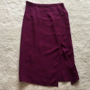 Sleek and sexy, this midi skirt from Madewell has a front slit that adds some drama. Never worn but no tags. Deep magenta/berry color.