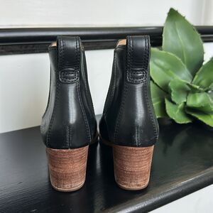 Step out in style with these sleek Madewell genuine leather ankle booties. Crafted from high-quality black leather with a stacked wooden block heel, these boots combine comfort with effortlessly cool design. The pull-on style with elastic side panels makes them easy to slip on and off, and they pair perfectly with jeans, dresses, and everything in between.