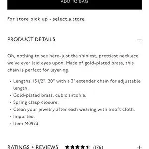 Madewell gold plated brass Herringbone necklace NEW