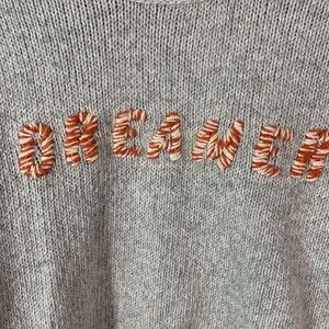 Candy cane peppermint stitch knit “dreamer” on gray knit
